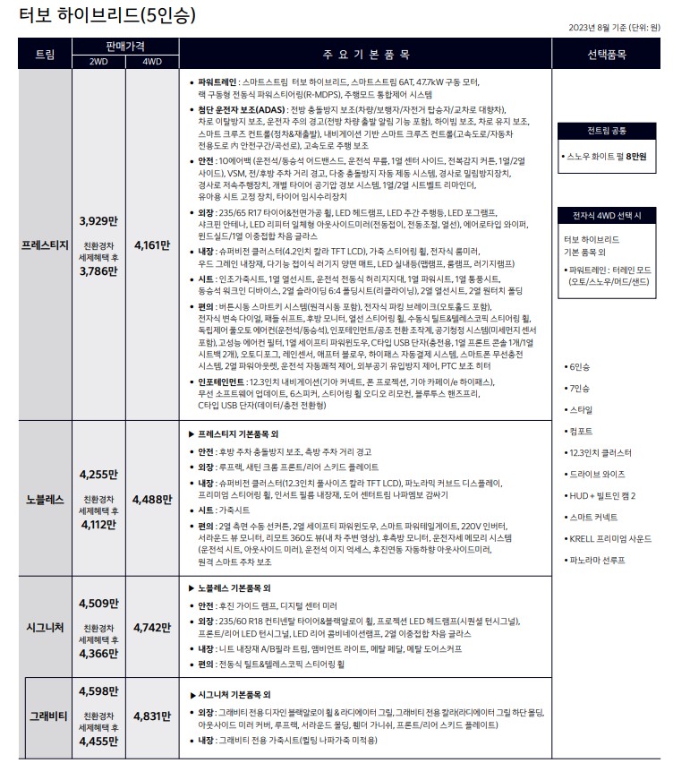 이번 모델은 총 4가지 트림으로 구성되어 있으며 가격 구성은 아래와 같이 되어 있습니다.