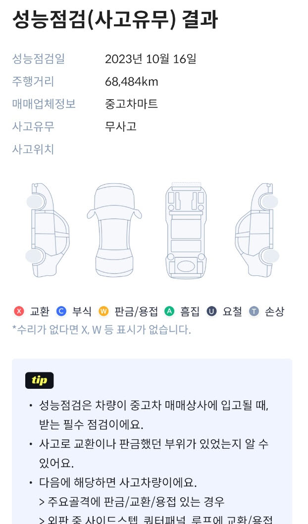 특히 중고차 사이트에서 보험이력에 대해 봐도 판단이 잘 안 되던 저에게는 마지막 판단에 결정적인 역할을 했습니다.